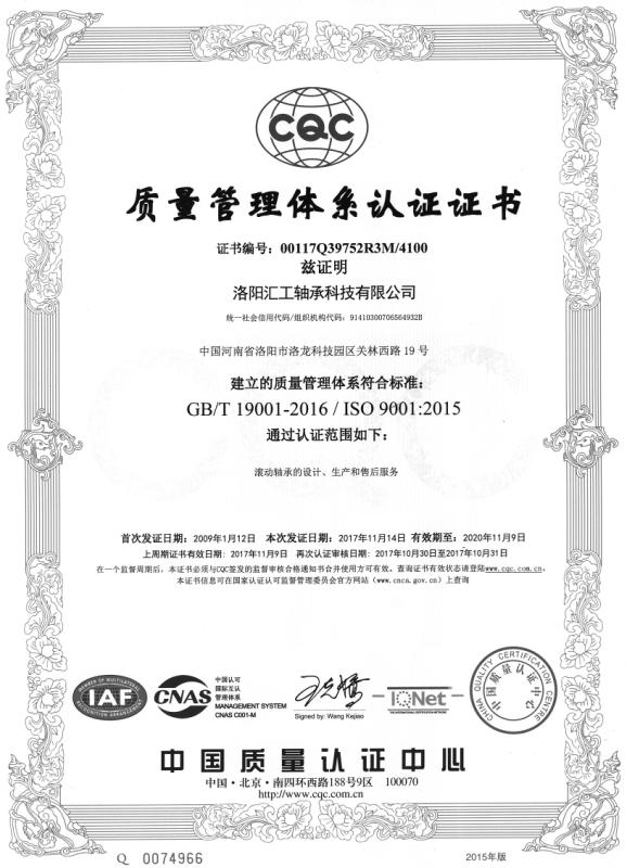 公司通過了1SO9001:2015質(zhì)量管理體系的認(rèn)證,軸承出口可根據(jù)客戶要求,進(jìn)行SG.S、DNV、ABS、ASIA等第三方國際檢測機(jī)構(gòu)的檢驗。